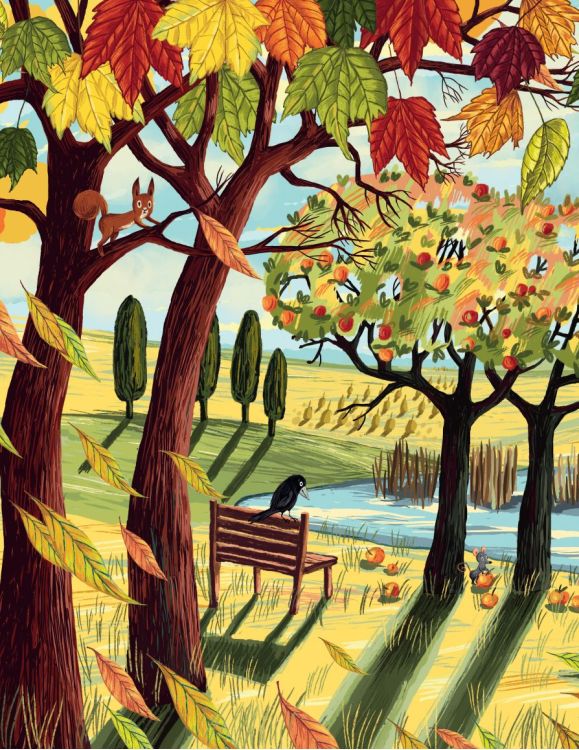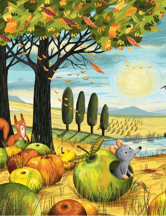 Vine toamna si padurea capata o sumedenie de culori minunate. Vulpea, Soricelul si Corbul sunt tristi: stiu ca zilele calduroase, in care soarele le incalzeste blanitele si penele, iar hrana este usor de gasit, se vor sfarsi curand. Insa Veverita continua sa se bucure de fiecare zi, nici macar furtuna salbatica de toamna care se abate asupra padurii nu-i poate face rau. Oare chiar asa sa fie?