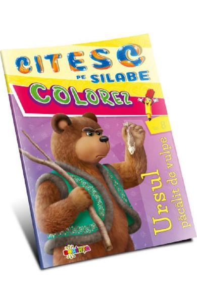 Cu ajutorul acestei carticele, cei mici vor invata sa citeasca pe silabe povestea Ursul pacalit de vulpe iar apoi vor putea colora personajele.