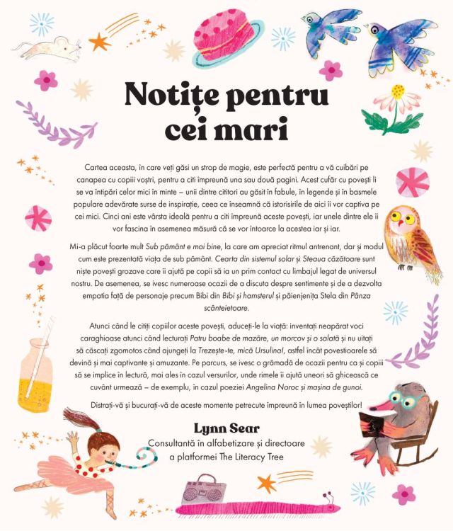 Bucurati-va impreuna cu cei mari de aceste povesti si cititi-le cu glas tare! S-ar putea ca, pana ajungeti la ultimele file, sa incepeti sa recunoasteti unele cuvinte. Si, intr-o zi, curand, ati putea sa cititi aceste povesti voi insiva.