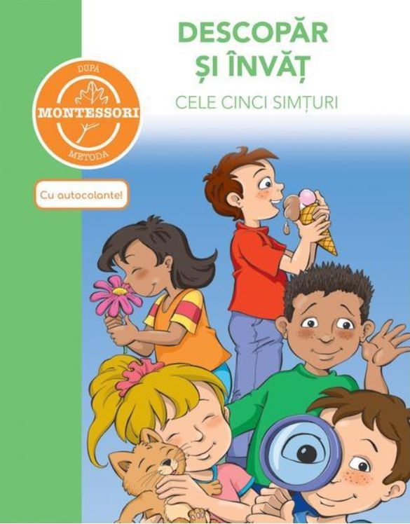 Descopar si invat cele cinci simturi - dupa metoda Montessori. Carte cu autocolante