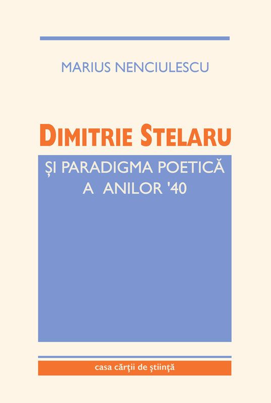 Scopul lucrarii de fata este de a oferi, in premiera, o analiza critica aprofundata a operei lui Dimitrie Stelaru, in integralitatea ei. In plus, este reliefat contextul poetic al anilor ’40, mai precis al perioadei 1937-1947 (cuprinsa generic intre debutul lui Emil Botta cu Intunecatul April si ultimul an in care se mai poate publica liber) cu intentia de a evidentia ca atunci s-a afirmat in literatura romana o noua paradigma poetica, ce trebuie sa-si marcheze in constiinta criticii, cat se poate de pregnant, statutul de reper. Prin ea se produce despartirea de radicalismul modernist (inteles in sens larg, adica cuprinzand atat purismul, ermetismul, cat si poeticile avangardei) si revenirea la expresivitate, una ce insa a filtrat si asimilat lucrurile „viabile” din acesta.
