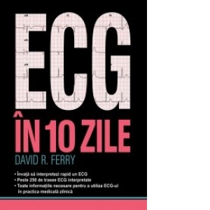 Electrocardiografia este o explorare cardiaca neinvaziva extrem de importanta, care se poate efectua in orice conditii si care ofera informatii foarte utile pentru strategia terapeutica ulterioara. Avand in vedere importanta diagnostica vitala a electrocardiogramei, ea trebuie inteleasa si insusita de toti medicii, indiferent de specialitate, de medicii rezidenti, de studentii la me-dicina si de alti profesionisti din domeniul medical. ECG in 10 zile are la baza cursul foarte popular al autorului si ofera o abordare pas cu pas unica, imagini vectoriale extrem de clare, plus trasee ECG de exercitiu pentru a creste increderea in sine si a rafina abilitatile clinice.