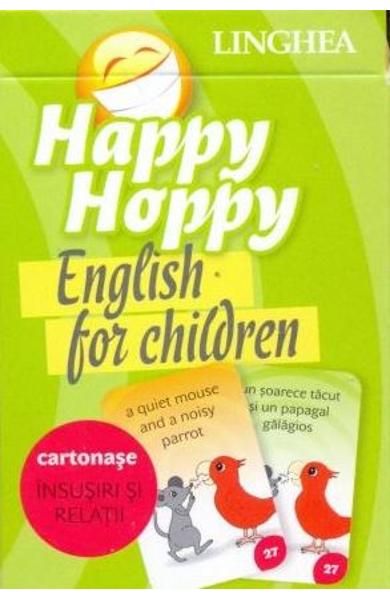 Happy Hoppy. English for Children. Cartonase: Insusiri si relatii contine cartonase cu imagini pentru invatarea distractiva a limbii engleze. In cutie gasiti: • 52 de cartonase in engleza si romana • ilustratii colorate • expresii alese cu grija
