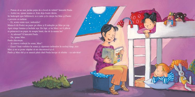 Ura! Pentru prima data, Max are voie sa ramana peste noapte la prietena lui, Paula. Isi face rapid bagajul: pijamaua, periuta de dinti si, bineinteles, lanterna. Dar oare poate Max sa adoarma fara pupicul de noapte buna al mamei?