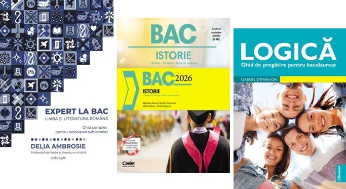 • 50 de teste tip grilă după modelul subiectului întâi de la examenul de bacalaureat.