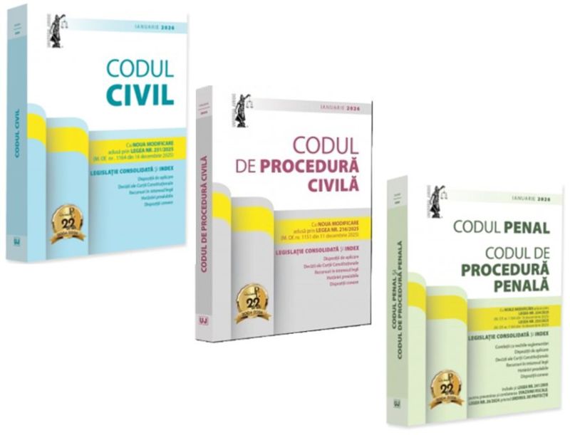 Editia a 26-a (revizuita) a lucrarii, Codul civil: ianuarie 2026, ingrijita de prof. univ. dr. Dan Lupascu si tiparita pe hartie alba de calitate superioara, include NOUA MODIFICARE adusa prin LEGEA NR. 231/2025 (M. Of. nr. 1164 din 16 decembrie 2025).