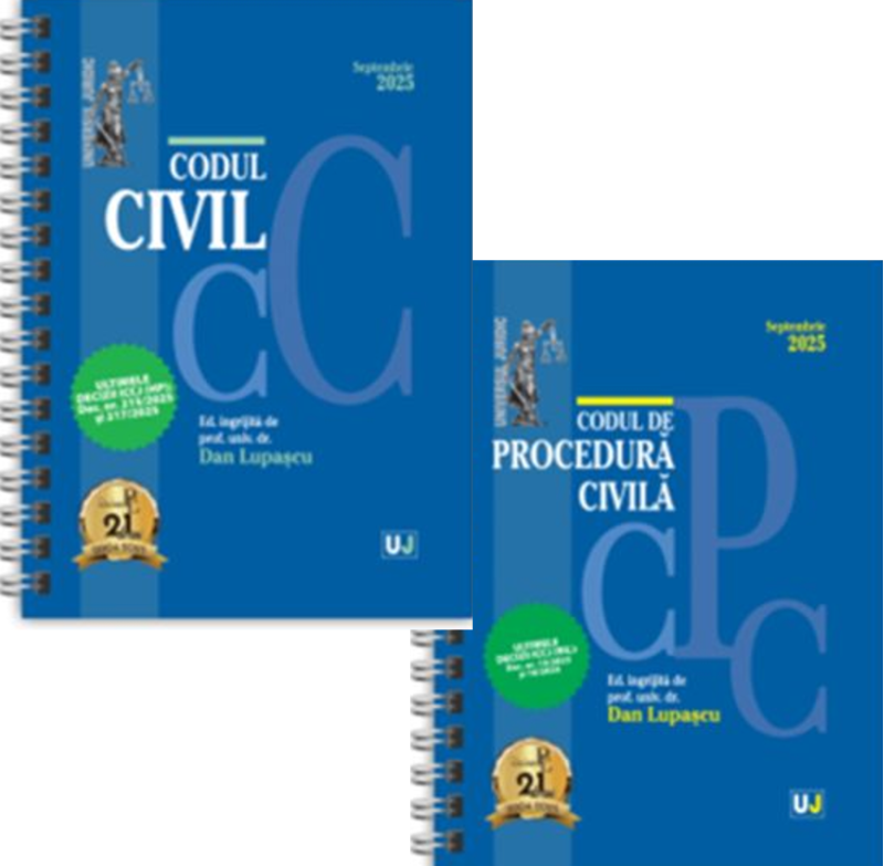 Lucrarea Codul civil Septembrie 2025 (editie spiralata), ingrijita de prof. univ. dr. Dan Lupascu si tiparita pe hartie alba de calitate superioara, contine textul Codului civil actualizat, imbogatit cu dispozitii de aplicare, decizii ale Curtii Constitutionale, recursuri in interesul legii, DECIZII ICCJ (HP) – inclusiv Dec. nr. 215/2025 si 217/2025, NUMEROASE DISPOZITII CONEXE si referinte legislative deosebit de utile.