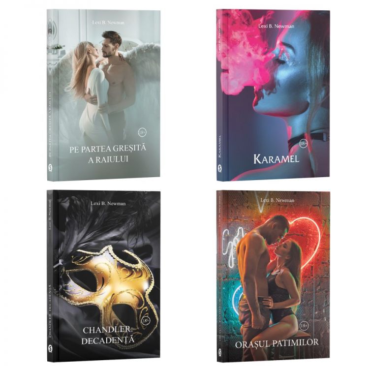 Pachetul „Iubiri pasionale” este format din patru romane de dragoste, bine piperate, semnate Lexi B. Newman, si este disponibil cititorilor majori,18+ ani.