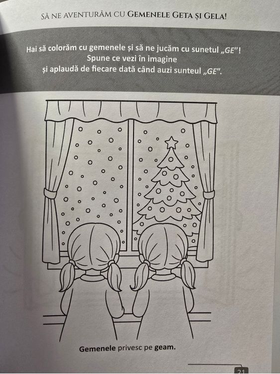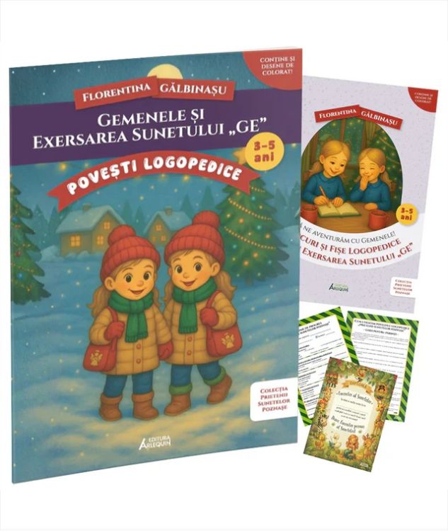 - Poveste logopedica „Gemenele si exersarea sunetului GE” care introduce sunetul GE prin joaca si imaginatie. Format A4 - 24 pagini