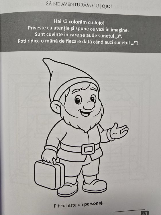 - Caietul „Sa ne aventuram cu Jojo! – Jocuri si fise logopedice pentru exersarea sunetului J”, in cele 52 de pagini, continua aventura prin labirinturi, potriviri de umbre, imagini de descris si contururi de colorat. Format A5