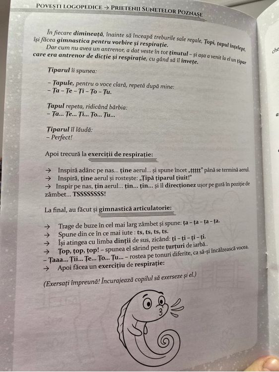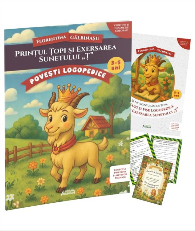 - Povestea logopedica „Printul Țopi si exersarea sunetului „Ț” introduce sunetul „Ț” prin joaca si imaginatie. Format A4 - 24 pagini