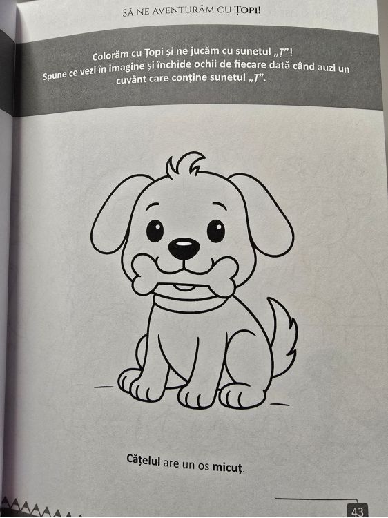 - Caietul de activitati „Sa ne aventuram cu Topi! – Jocuri si fise logopedice pentru exersarea sunetului Ț, in cele 44 de pagini, continua aventura prin labirinturi, potriviri de umbre, imagini de descris si contururi de colorat. Format A5