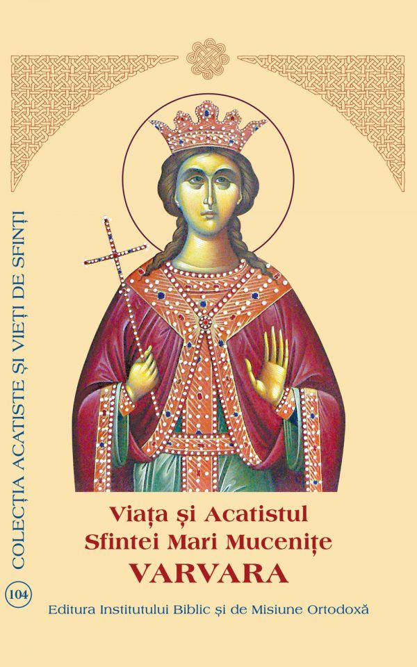 „Mieluseaua Ta, Iisuse, Varvara striga cu mare glas: Pe Tine, Mirele meu, Te iubesc si, pe Tine cautan-du-Te, ma chinuiesc si impreuna cu Tine ma rastignesc si impreuna ma ingrop prin Botezul Tau si patimesc pentru Tine, ca sa viez intru Tine; ci, ca pe o jertfa fara de prihana, primeste-ma pe mine, ceea ce cu dragoste ma jertfesc Tie. Pentru rugaciunile ei, ca un milostiv, mantuieste sufletele noastre.”