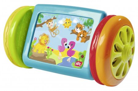 Aceasta jucarie va capta inca de la inceput atentia celor mici datorita design-ului dragut si culorilor vesele. Jucaria ajuta la dezvoltarea coordonarii ochi-mana, la identificarea culorilor si la perfectionarea miscarilor fine. Piesa centrala are o oglinda colorata pe o parte iar pe cealalta parte o imagine cu animale dragute, care pot fi rulate inainte si inapoi prin cele doua roti cu sunete.