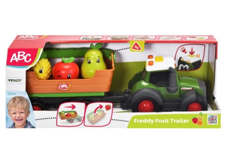 Tractor de jucarie Fendt cu remorca si zdranganitoare, cutie detasabila, cu lumina si sunet, pentru copii mici si bebelusi de la 12 luni. Cu remorca de 30 cm, prima recolta poate fi adusa rapid de pe camp. Exista mici elemente de zdranganitor in interior pentru a face jocul cu pere, mere si ananas si mai distractiv. In acest fel, sunt stimulate toate simturile micilor tineri fermieri. O scurta apasare a unui buton este suficienta pentru a aprinde luminile de avertizare ale tractorului. In acelasi timp, se aude si sunetul incitant al motorului masinii.