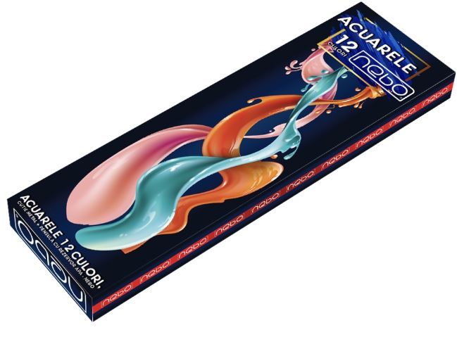 -Acuarele 12 culori, cutie metal + pensula cu rezervor apa - NEBO