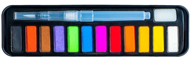 Acuarele sub forma de pastila, usor de combinat pentru a obtine o gama variata de culori, sunt insotite de o pensula cu rezervor, setul entuziasmand copiii si ajutandu-i sa aibe un timp distractiv, plin de creativitate.