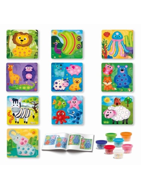 Un set de lucru cu continut educational care il invata pe copil sa decoreze cartonase pre-imprimate folosind plastilina, creand bile si zigzaguri cu mainile. Copilul invata sa experimenteze cu culori si texturi, dezvoltandu-si abilitatile motorii fine in timp ce decoreaza cartonase. Realizeaza bile mici si linii cu diferitele culori de plastilina si completeaza imaginile cu animale pas cu pas. Fa animalele sa para reale si cunoaste-ti propria lume. Set ideal pentru distractie, invatare si timp creativ departe de ecrane. Contine 5 cartonase pre-imprimate cu animale pre-imprimate pe ambele parti, 7 borcane de plastilina a cate 28g fiecare, ghid pas cu pas pentru decorarea cartonaselor cu plastilina.