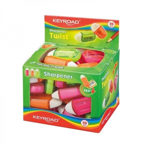 -Ascutitoare simpla Keyroad Twist KR971076 KR971837, 1 orificiu, plastic, cu radiera, rotativa