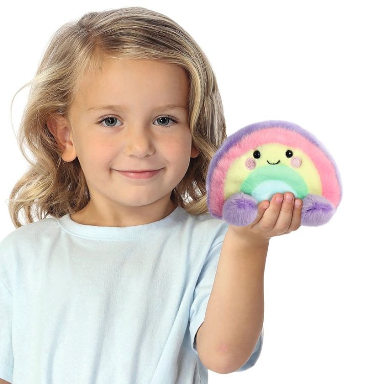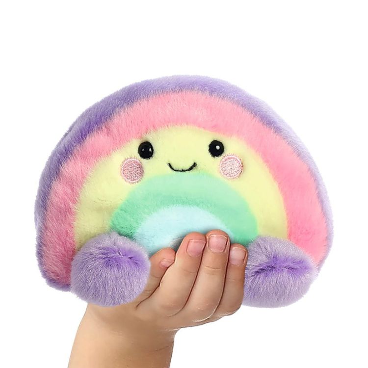 Aurora Palm Pals – Jucarie de plus Curcubeu, 13 cm este un plus vesel si plin de culoare, creat pentru a incapea perfect in palma, cu un design inspirat de forma unui curcubeu.