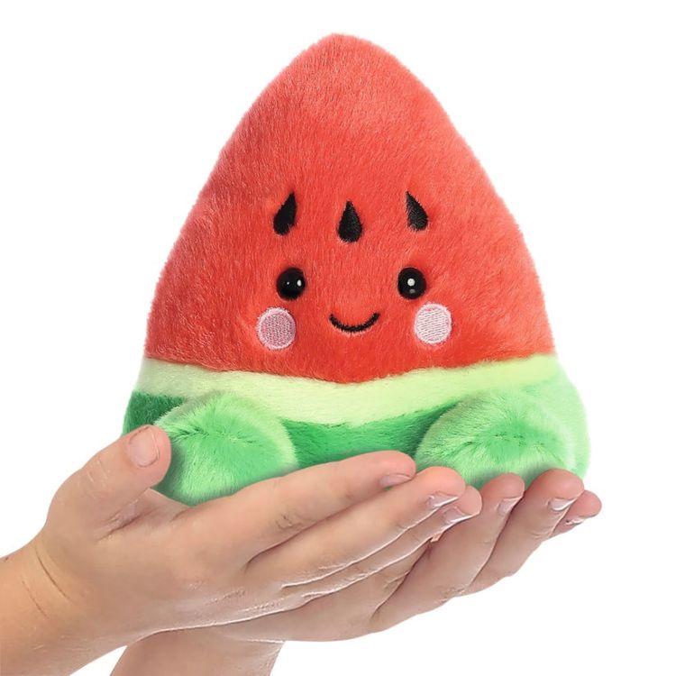 Aurora Palm Pals – Jucarie de plus Pepene, 13 cm este un plus colorat si plin de farmec, creat pentru a incapea perfect in palma, cu un design vesel inspirat dintr-o felie de pepene.
