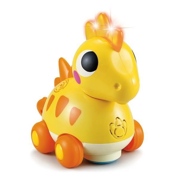 Jucaria dinozaur cu design dragut este perfecta pentru copiii cu varsta peste 18 luni, care sa descopere lumea Dino. Reda muzica si sunete dragute pentru cel mic. Cadou ideal pentru micut si cu siguranta va oferi ore nesfarsite de distractie. Dinozaurul cand este atins incepe sa mearga in diferite directii si sa emita sunete si lumini haioase. Sunt doua moduri de joaca Atinge si te Joaca, iar al doilea este Push a long. Copii vor fi curiosi sa il atinga si astfel, motivati sa faca miscare urmarindu-l. Produsul este fabricat la standarde inalte de calitate.