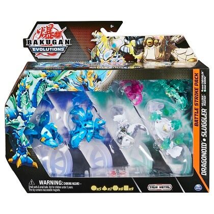 Va prezentam noul pachet de batalie a evolutiei Bakugan! Pachetul de batalie este cel mai bun element de colectie - contine un Bakugan Platinum forjat in metal adevarat, 2 Bakugan, 1 Geogan, 2 Nanogan, 6 BakuCores, 3 carti de personaj, 3 carti de abilitati si 3 carti de poarta. Contine tot ce ai nevoie pentru a colecta, incaiera si multe altele! Bakugan-ul tau tocmai a devenit mai puternic ca niciodata cu aceste Bakugan-uri de platina indarjit in lupta - cate una in fiecare pachet facute din metal adevarat! Simte greutatea premium in maini in timp ce le rostogolesti peste BakuCores! Priveste cum Bakugan-ul tau se deschide si se transforma intr-o creatura feroce! Acesti campioni supergrei vor produce daune incredibile in lupta, ca niciodata pana acum. Intra in actiune cu prietenii impotriva lui Bakugan si iesi victorios! Pentru un atac surpriza, invoca-l pe Nanogan pentru a-ti imputernici Bakugan-ul si cucereste-ti adversarul! Nanogan se poate atasa la orice Bakugan pentru un impuls puternic in lupta. Nanogan are detalii translucide si modele impresionante! Amesteca si asorteaza ca sa creezi combinatia ta preferata si pentru a produce pagube incredibile in lupta. Foloseste cardurile de abilitate incluse pentru si mai multe moduri de a juca si de a castiga bonusuri! Adauga toate jucariile Bakugan Evolutions din sezonul 4 in colectia ta si construieste-ti propria echipa de vis! Du-ti bataile la nivelul urmator cu un nou pachet de batalie a evolutiei Bakugan! Acest pachet contine personajele: Dragonoid, Slugger, Nillious si Pegatrix, Nano Chrysalin si Nano Widow.