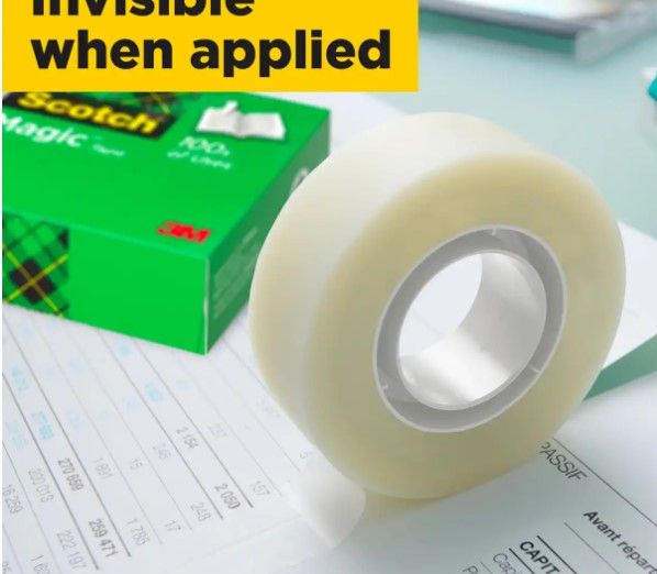 Scotch® Magic™ Tape are aspect translucid pe rola, dar dispare atunci cand este aplicata pe hartie.