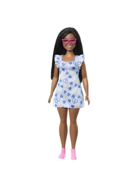 Conceputa pentru a reflecta lumea pe care o vad copiii astazi, aceasta linie diversa de papusi Barbie Fashionistas prezinta stiluri stralucitoare si moderne, care ofera posibilitati nesfarsite de povestire. Barbie a colaborat cu Societatea Nationala pentru Sindromul Down pentru a crea o papusa Barbie cu sindrom Down care celebreaza aceasta comunitate. Simboluri semnificative sunt incorporate in intreaga tinuta, iar paleta de culori albastru si galben reprezinta constientizarea sindromului Down. Cele trei sageti din unele dintre inimioarele de pe imprimeu reprezinta al treilea cromozom 21 pe care il au persoanele cu sindrom Down si sunt indreptate spre exterior pentru a reprezenta ridicarea si mersul inainte. Papusa Barbie poarta ochelari de vedere roz - super draguta si practica! Ochelarii de vedere cu prescriptie medicala sunt mai frecventi la persoanele cu sindrom Down decat in populatia generala. Are parul impletit negru si poarta pantofi roz - cu un aspect atat de versatil si modern, papusa Barbie este pregatita pentru orice aventura pe care imaginatia o viseaza!
