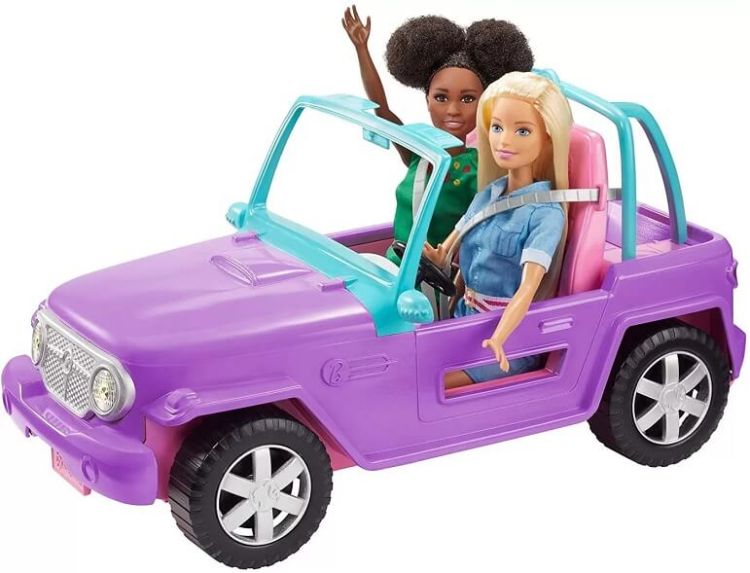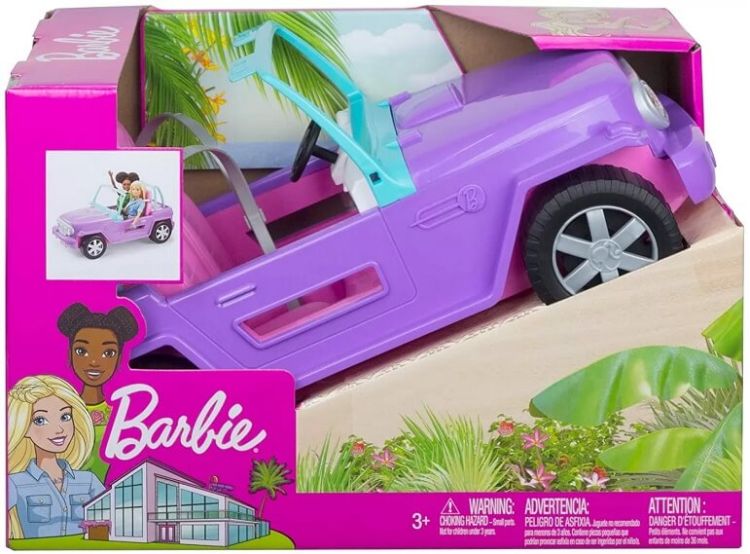 Barbie si prietena sa sunt pregatite sa porneasca intr-o noua aventura cu Masina de teren. Realizata in nuante de mov, interior roz si albastru, totul este in stilul lui Barbie. Acoperisul deschis si centurile de siguranta argintii, sunt elemente pe care cei mici le vor indragi de la prima vedere. Porneste spre noi aventuri off-road cu Masina de teren.
