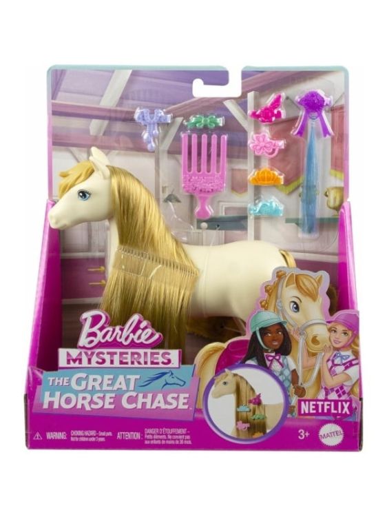 Inspirati de serialul Netflix Barbie Mysteries The Great Horse Chase, acesti cai de jucarie sunt gata sa intre in joc. Alege dintre cei mai buni prieteni ponei ai papusii Barbie &bdquoMalibu&rdquo si Barbie &bdquoBrooklyn&rdquo, Tornado si Pepper. Fiecare cal de jucarie are o coama foarte lunga si vine cu o extensie de par, pieptene si sase agrafe adorabile. Fiecare se vinde separat, in functie de disponibilitate. Papusa nu este inclusa. Culorile si decoratiunile pot varia.
