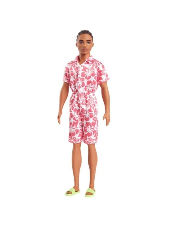 Papusile Ken Fashionistas celebreaza diversitatea si ofera posibilitati nesfarsite de povestire si explorare a modei. Cu aceasta colectie incluziva, copiii pot vedea cat de distractiv este sa-si exprime personalitatea prin stil! Barbie si Ken Fashionistas sunt un cadou ideal pentru copiii iubitori de moda de pretutindeni. Fiecare se vinde separat, in functie de disponibilitate. Papusile nu pot sta singure. Culorile si decoratiunile pot varia. Posibilitatile de povestire sunt nesfarsite cu papusile Ken Fashionistas! Îl mentin cool cu look-uri la moda adaptate stilului lor individual. Aceasta papusa Ken poarta o salopeta cu imprimeu hawaian alb si coral care ii face cu adevarat sa iasa in evidenta personalitatea! Parul sau este modelat intr-un stil impletit, in timp ce sandalele de culoare verde aprins ii completeaza tinuta versatila si eleganta. De la intalnirea cu prietenii pana la petrecerea timpului pe plaja, aceasta papusa Ken este imbracata pentru orice aventura la care viseaza copiii! Copiii de la 3 ani in sus pot colecta si alte papusi Barbie Fashionistas pentru si mai multa distractie cu prietenii si la moda la joaca!