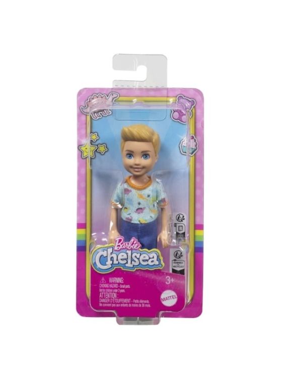 Papusile Barbie Chelsea vin cu pantofi si piese vestimentare detasabile. Creeaza povesti nenumarate cu scenarii diferite impreuna cu papusile Chelsea. Pentru scenarii creative achizitioneaza toate papusile Chelsea. Aceasta papusa Chelsea este adorabila, avand un imprimeu cu dinozauri pe partea de sus si pantaloni albastri. Parul sau blond este modelat intr-un stil modern, iar adidasii albi ii completeaza look-ul.