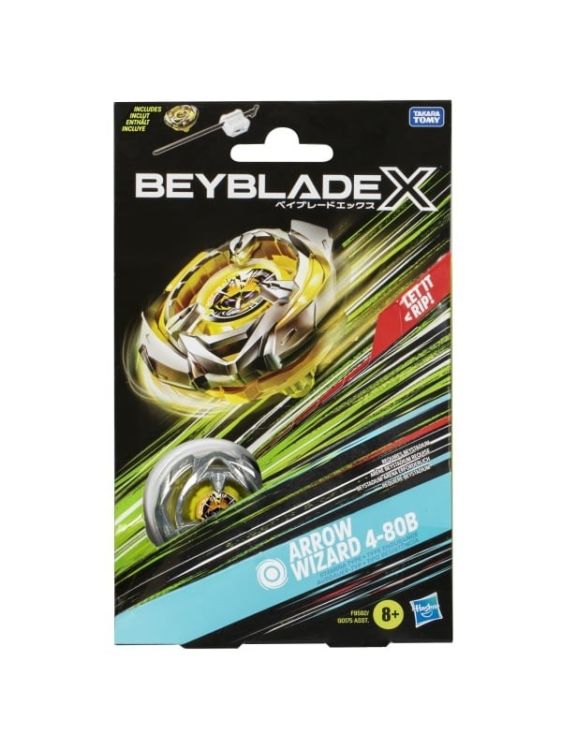 Experimentati emotia urmatoarei generatii de stadioane, lansatoare si varfuri Beyblade Beyblade X cu Pachetul de pornire Beyblade X Scythe Incendio 4-60T, care include 1 blat si lansator Balance Type care se roteste in dreapta (necesar Beystadium, vandut separat). Lansati direct in lupta sau reconfigurati lama interschimbabile, clichetul si piciorul acestui Starter Pack cu cele ale altor blaturi Beyblade X (vandute separat) pentru a va crea propriul Bey de neintrecut. Beyblade X dispune de inovatia X-Celerator Gear System pentru a-ti imbunatati jocul. Atunci cand echipamentul unui blat Beyblade X cupleaza sina arenei Beystadium, acesta poate accelera super intr-un Xtreme Dash care il arunca in jurul stadionului pentru ciocniri zdrobitoare si explozii epice. Bladers isi lanseaza varfurile in ciocniri aprige impotriva punctelor de marcare ale adversarului lor la fiecare confruntare primul care obtine 4 puncte castiga. Jucariile Hasbro Beyblade cu blaturi din metal turnate Takara Tomy autentice sunt cadouri grozave pentru copii pentru baieti si fete cu varsta de 8 ani in sus. Acest pachet contine figurina Arrow Wizard 4-80B.