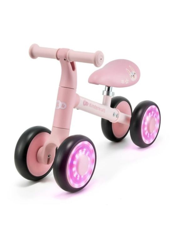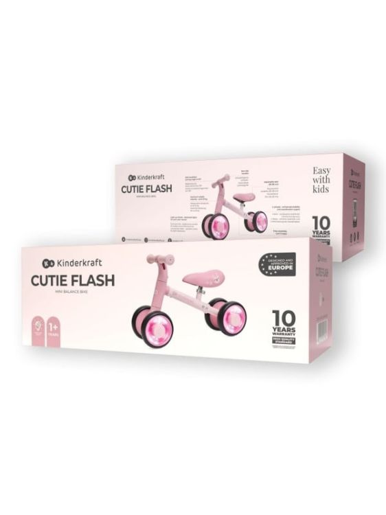 Bicicleta de echilibru Kinderkraft CUTIE FLASH, PINK Copilul tau este pregatit pentru prima lui plimbare pe bicicleta? KINDERKRAFT CUTIE FLASH PINK este o mini-bicicleta fara pedale, care sprijina dezvoltarea motorie, coordonarea si increderea in sine, pregatindu-i pe cei mici pentru viitoarele lor aventuri cu bicicleta clasica. Datorita constructiei stabile si detaliilor pe care le va indragi fiecare copil, KINDERKRAFT CUTIE FLASH PINK asigura nu doar distractia, ci si confortul si siguranta in fiecare etapa de invatare. Usoara si simplu de utilizat ideala ca prima bicicleta a copilului tau! si ideala si pentru cadou! Siguranta si vizibilitate KINDERKRAFT CUTIE FLASH PINK are luminile colorate RGB din rotile EVA, ce nu necesita intretinere, atrag atentia si cresc vizibilitatea copilului, facand fiecare plimbare mai sigura. Fiecare versiune de culoare are propria iluminare dedicata, iar rulmentii ABEC-7 garanteaza un mers deosebit de lin si silentios. Utilizare confortabila Noua sa din piele ecologica, decorata cu desene cu animale, garanteaza confortul chiar si in timpul plimbarilor mai lungi, iar faptul ca este usor de curatat reprezinta un atu suplimentar pentru parinti. Învatare si control Limitatorul unghiului de viraj al ghidonului (135°) previne manevrele bruste si periculoase, lucru esential in timpul invatarii mersului pe bicicleta. Manerele TPR ergonomice sunt ideale pentru palmele mici, carora le asigura o prindere ferma si stabila. Creste impreuna cu copilul saua reglabila permite adaptarea inaltimii de la 26 la 28 cm, astfel ca bicicleta KINDERKRAFT CUTIE FLASH PINK va creste impreuna cu copilul tau si ii va fi utila pentru mult timp. Stabilitate si rezistenta Structura cu patru roti asigura o stabilitate deosebita, care este importanta in primii ani de invatat mersul pe bicicleta. Usor, dar rezistent, cadrul din otel face mai simple atat utilizarea, cat si transportul. Siguranta certificata KINDERKRAFT CUTIE FLASH PINK indeplineste normele EN 71-1+A12018 si EN 62115, care garanteaza siguranta in timpul invatatului si distractiei. KINDERKRAFT CUTIE FLASH PINK mini-bicicleta fara pedale pentru cei mici ✔ Siguranta si vizibilitate Luminile RGB colorate din roti cresc siguranta si atractivitatea bicicletei pentru cei mici. ✔ sa confortabila din piele ecologica impodobita cu desene cu animale, asigura confortul si este usor de curatat. ✔ Învatatul mersului pe bicicleta in siguranta Limitarea unghiului de viraj al ghidonului la 135° pentru mai mult control si siguranta. ✔ sa reglabila pentru utilizare indelungata Se adapteaza la inaltimea copilului, ideala de la varsta de 12 luni pana la greutatea de 25 kg. ✔ Structura cu patru roti pentru stabilitate Asigura invatarea in siguranta a mentinerii echilibrului si coordonarii. ✔ Constructie usoara si rezistenta din otel Face mai usor transportul, ideala pentru parintii activi. ✔ Siguranta certificata Îndeplineste normele EN 71-1+A12018 si EN 62115, care garanteaza siguranta mecanica si electrica. ✔ Cadoul ideal O idee fantastica de cadou, care sprijina dezvoltarea motorie a copilului. Specificatii Materialul cadrului Otel Materialul rotilor EVA Dimensiuni Lungimea bicicletei depliate 53 cm Latimea bicicletei depliate 22, 5 cm Înaltimea bicicletei depliate 36, 5 cm Lungimea seii 20 cm Distanta de la sol pana la sa 27-30 cm Diametrul rotilor 15 cm