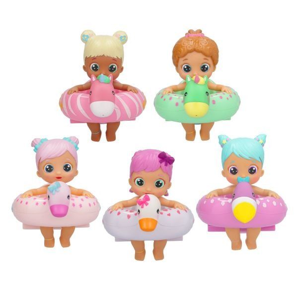 Floaties sunt surorile Bloopies ce au colace dragute in forma de animale, pentru a le ajuta sa inoate! Cand trageti de firul din spatele colacului si puneti papusa in apa... ea se va misca de parca ar inota cu adevarat! in afara de a inota, papuselele Floaties stropesc cu apa.