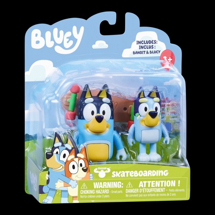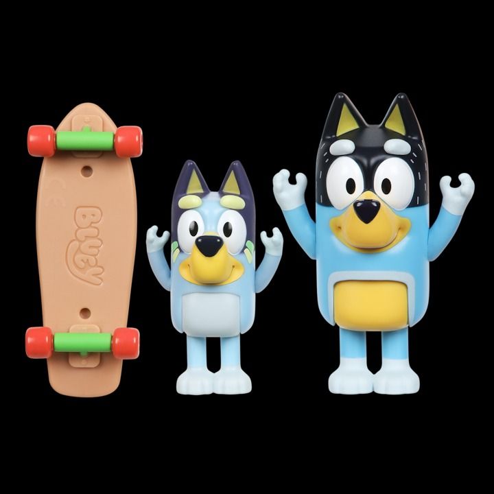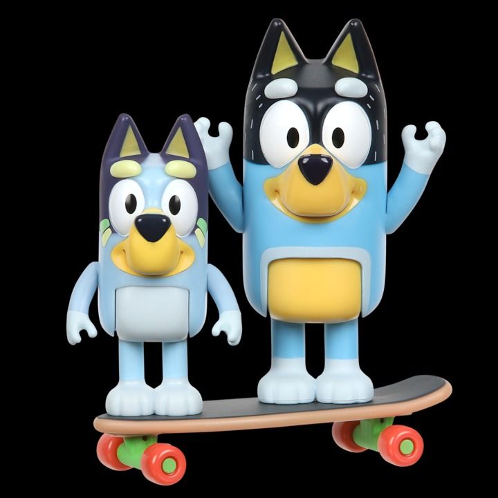 Bluey este un caine albastru stralucitor, in varsta de sase ani, care are o abilitate unica - poate transforma orice zi obisnuita intr-o serie de aventuri nesfarsite si vesele! Skateboarding este un set de doua figurine de caini mobile. Luati-l pe Bluey si pe tatal ei, Bandit, la o plimbare cu skateboard-ul si incercati noi trucuri si trucuri cu ei! Un caine albastru cu urechi pline de viata si o fata prietenoasa le va oferi copiilor posibilitatea de a recrea povesti cunoscute din animatii si de a-si crea propriile povesti imaginative.