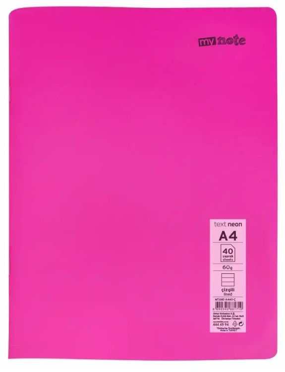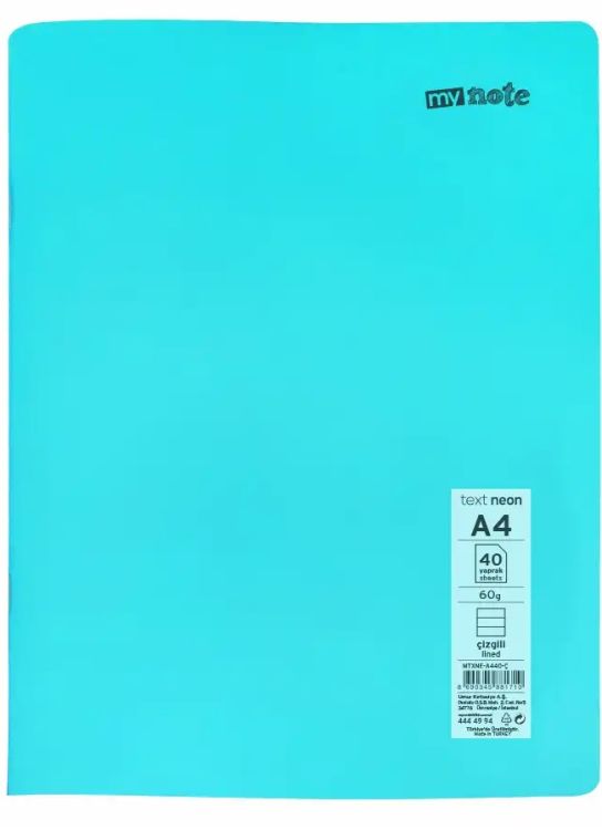 -Caiet capsat Mynote, format A4, 40 file offset 60 g/mp, liniatura dictando, coperta PP neon, mix de 8 culori