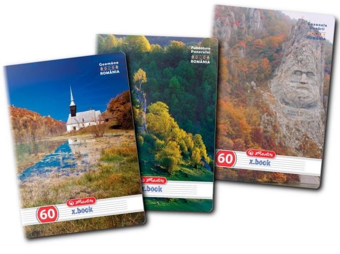 -Caiet scolar A4 Herlitz X.Book Discover Romania, 60 file, dictando, colturi rotunjite, 70g/mp, 9487870