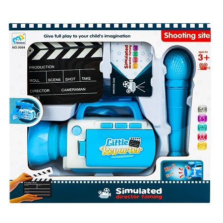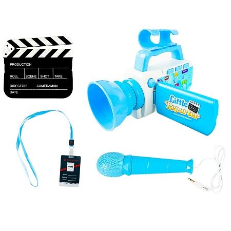 Jucarie de rol, reporter cameraman, microfon, camera de filmat, ardezie de film si card de jurnalist, educational si interactiv, multicolor