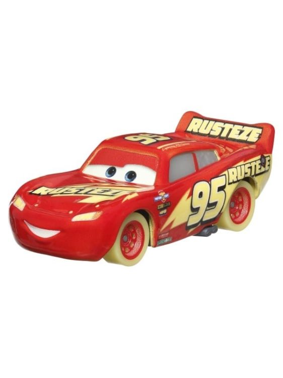 Pregateste-te pentru cursele nocturne! Starul Disney Pixar Cars, Lightning McQueen, echipa sa si alti prieteni din Cupa Piston sunt pregatiti pentru o noua cursa. Fiecare vehicul metalic are o culoare care straluceste in intuneric, oferind o noua experienta de joc de curse. Copiii pot colecta vehiculele si seturile de joaca ale seriei pentru mai multe povesti pline de actiune. Cadou ideal pentru fanii masinii, de la 3 ani in sus. Fiecare se vinde separat, in functie de disponibilitate. Culorile si modelele pot varia. Acest pachet contine personajul Fulger McQueen.