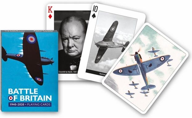 Pachet cu 55 de carti de joc de colectie (52 de carti de joc + 2 jokeri + o carte descriptiva), care omagiaza marea batalie aeriana din al 2-lea razboi mondial, care a avut loc deasupra cerului Angliei. Atunci, pilotii Royal Air Force au tinut piept cu eroism uriasei flote aeriene a Luftwaffe, care avea ca misiune distrugerea Londrei si pregatirea invaziei naziste pe insulele britanice.
