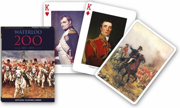 Pachet cu 55 de carti de joc de colectie (52 de carti de joc + 2 jokeri + o carte descriptiva), fiecare carte de joc avand ca background cate o pictura, sculptura, gravura, toate avand ca tema personalitatea lui Napoleon Bonaparte. Batalia de la Waterloo, din anul 2015, a marcat infrangerea sa definitiva.