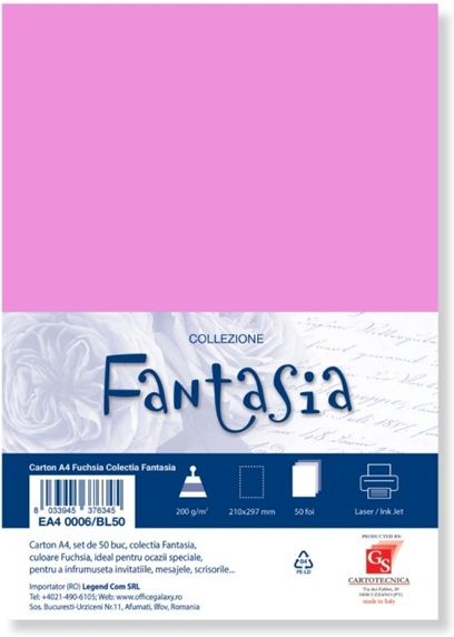 Carton special colorat A4 Colorarte Fantasia, 200g/mp, fuchsia, top 50 coli
