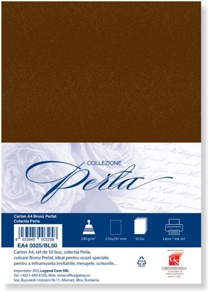 Carton special colorat A4 Colorarte Perla, 250g/mp, bronz perlat, top 50 coli