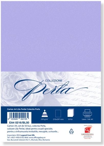 Carton special colorat A4 Colorarte Perla, 250g/mp, lila perlat, top 50 coli