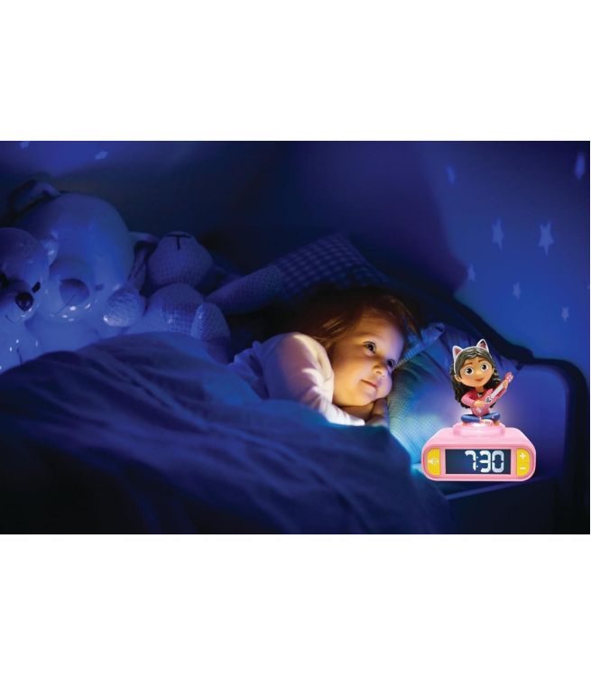 Acest adorabil ceas desteptator are tot ce este necesar pentru a asigura o noapte linistita si o dimineata senzationala! Cu butoanele sale usor de utilizat, puteti seta ceasul in modul 12/24 de ore si, de asemenea, timpul alarmei; toate acestea fiind vizibile pe ecranul LCD iluminat care nu deranjeaza somnul. Aveti de ales dintre sase tonuri tematice diferite pentru alarma si un buton suplimentar cu sase efecte sonore tematice pentru mai multa distractie! Puteti seta volumul sa creasca treptat sau sa alegeti direct un nivel mai ridicat. Si ce este cel mai bun la el? Cu siguranta lumina de noapte 3D stralucitoare, care se aprinde atunci cand apasati partea de sus a dispozitivului sau cand suna alarma! In plus, lumina se stinge automat dupa doua minute sau cand apasati din nou partea de sus. Pentru a opri alarma, trebuie doar sa apasati partea de sus a acesteia. Iar pentru cei care doresc sa mai ramana in pat, exista functia de amanare, care ofera inca noua minute de somn!