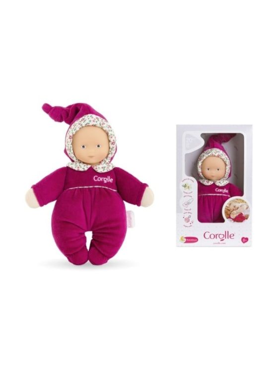 Prima papusa de joaca si prietena, papusa de plus de 20 cm este potrivita pentru copii inca din primele luni de viata si este fabricata dintr-un material foarte moale. De asemenea, are un clopotel in interior pentru a intari perceptia auditiva. Papusa este extra moale si, prin urmare, perfecta pentru a fi alintata, cuibarita si imbratisata. Parfum de vanilie caracteristic, toate papusile Corolle au un parfum placut si delicat de vanilie. De asemenea, pe papusa este cusuta o eticheta pentru inregistrarea numelui si adresei papusii in cazul in care se pierde. Se poate spala la masina, papusa poate fi spalata la masina la ciclu delicat.