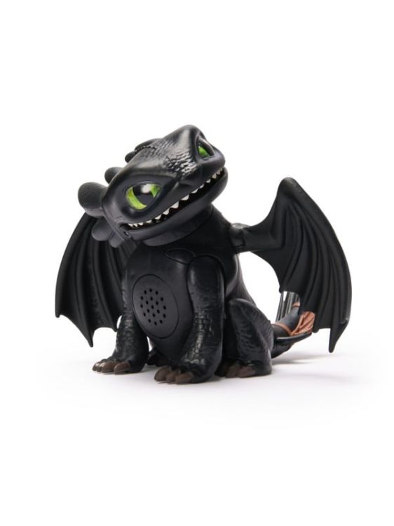 Aduceti aventura din How To Train Your Dragon acasa cu dragonul cu sunete. Bucura-te de propriul tau Night Fury cu miscari realiste ale capului si stil autentic de film, pe masura ce iti cunosti dragonul. Dragonul prinde viata cu 25 de sunete diferite pe masura ce ii mangai capul. Porneste-ti dragonul si trezeste-l cu o simpla atingere. Aceasta jucarie dragon are dimensiunea potrivita pentru a fi luata din mers sau pentru a va bucura acasa de propriul dragon. Baterii incluse. Copiii isi pot recrea scenele preferate sau pot inventa povesti noi in timp ce se arunca in jocul de roluri si in jocul senzorial cu aceasta figurina dragon captivanta. Fie ca este pentru o zi de nastere, sarbatoare sau orice alta sarbatoare, aceasta figurina dragon este o optiune interesanta pentru fanii tineri, pentru a inspira jocul imaginativ si aventurile eroice. Acest pachet contine personajul Toothless.