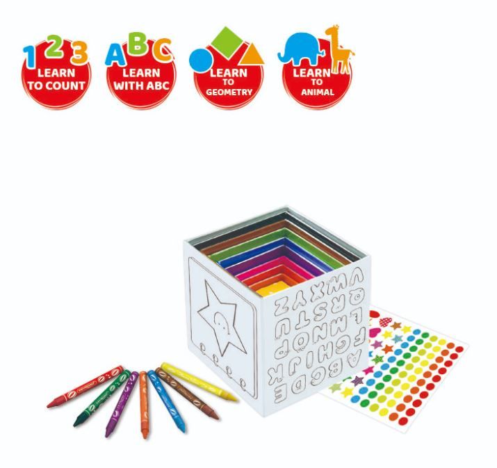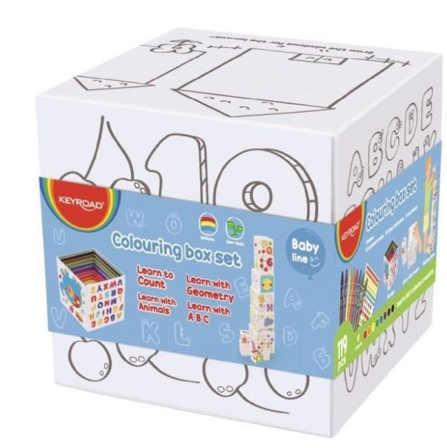 Cutii de colorat Keyroad Baby line KR972353, 10 cutii, 8 creioane cerate, abtibil